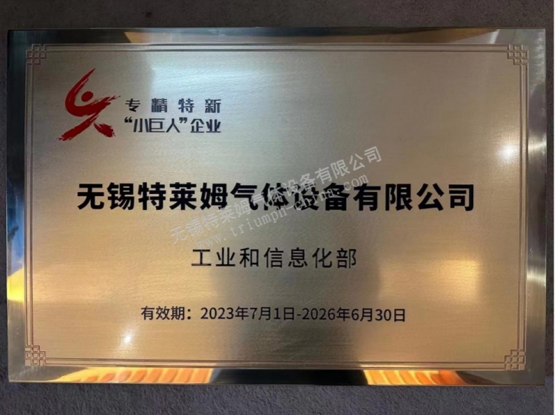 公司于2017獲得無錫市專精特新證書、2022年獲得江蘇省專精特新證書、2023年7月獲得國家級專精特新小巨人證書。此國家級證書的獲得,證明我公司所在的氣體設(shè)備制造領(lǐng)域已穩(wěn)居同行前列,并擁有自主創(chuàng)新能力和核心競爭力。