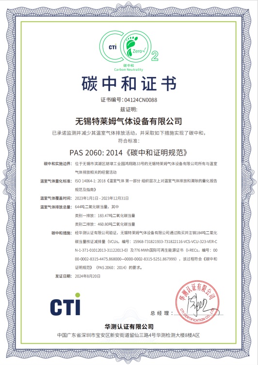 2023 年1月與協鑫簽約并合作建“零碳工廠”,通過項目設計、審批、施工和驗收等程序,終于在7月我公司2.5 兆瓦分布式光伏項目并網正式發(fā)電,公司董事長俞斌及各級領導出席并網儀式。并網后發(fā)出的綠電達 90 萬千瓦時,節(jié)煤 330 噸,減排約 1080 噸溫室氣體。為國家3060碳達峰碳中和助力。8 月 21 日,我司順利獲得行業(yè)內首張“碳中和證書”。