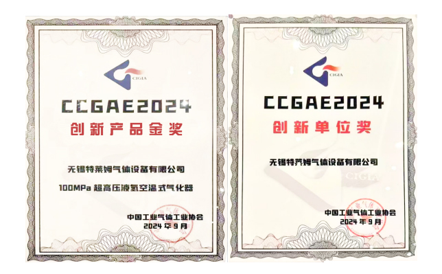 在本次展會上,協(xié)會還給我公司頒發(fā)了“100MPa超高壓液氫氣化器創(chuàng)新產(chǎn)品獎”、“創(chuàng)新單位獎”,公司的研發(fā)創(chuàng)新能力已被協(xié)會高度認可。
